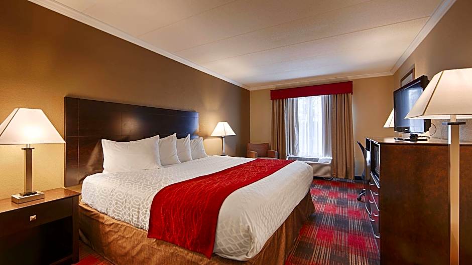 This room features a refrigerator, coffee machine, and flat-screen cable TV.